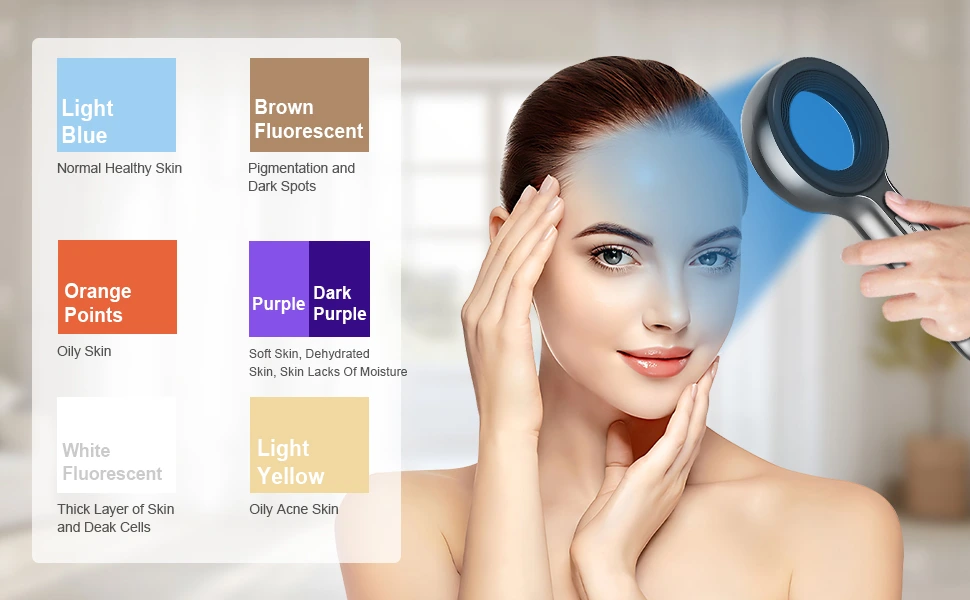 - 【Professional Skin Analyzer】The portable Wood lamp skin analyzer can detect skin problems that cannot be detected by the naked eye. wood lamp uses various light sources such as ultraviolet to diagnose skin conditions. woods lamp can accurately detect various skin conditions, such as dryness, oiliness, normal or dark color, and analyze skin damage and nutritional status. We provide you with more comprehensive skin health solutions.